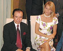 Carlos Menem and his wife, ex-Miss Universe, Cecilia Bolocco,